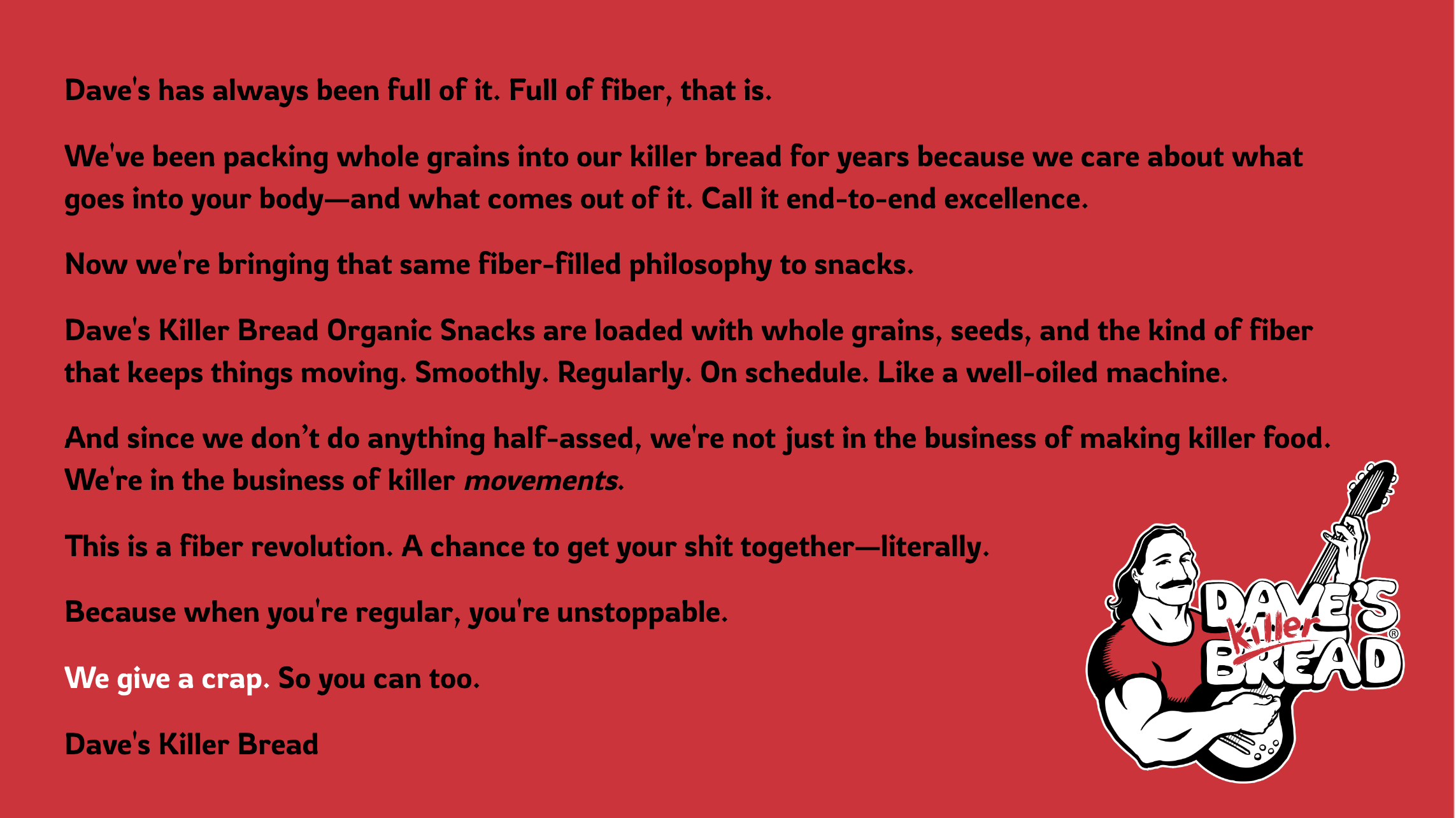 Dave’s Killer Bread wanted help breaking out of the bread aisle and into the snack aisle.